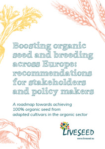 Messmer, Monika; Lazzaro, Mariateresa; Bruszik, Ágnes; Groot, Steven P.C.; Klaedtke, Stéphanie; Orsini, Stefano; Winter, Eva; Solfanelli, Francesco; Zanoli, Raffaele; Dudinskaya, Emilia; Grovermann, Christian; Mandolesi, Serena; Naspetti, Simona; Ozturk, Emel; Raaijmakers, Maaike; Gatzert, Xenia; Schäfer, Freya; Sommer, Martin; Rossmanith, Gebhard; de Buck, Abco; Pedersen, Tove Mariegaard; REY, Frederic; Bocci, Riccardo; Chable, Véronique; Feher, Judit; Nuijten, Edwin; Moreira, Pedro Mendes and Moeskops, Bram (editor): Bruszik, Ágnes; Ozturk, Emel; Lazzaro, Mariateresa and Petitti, Matteo (Eds.) (2021) Boosting organic seed and breeding across Europe: recommendations for stakeholders and policy makers. LIVESEED Booklet. .