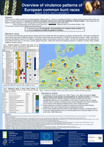 The production of high-quality organic seeds forms the basis of a functioning farming structure. Common bunt is a dangerous disease in organic farming and can cause a total failure of wheat harvests. In general, there are good control mechanisms like comprehensive seed testing, the use of resistant varieties, etc., but challenges still remain. For example, the race-specific effectiveness of the genetic resistances in bunt-resistant wheat lines leads to complex distribution patterns, as a result of regionally different bunt races and seed-borne spore transmission. In this context, all actors of the organic breeding and seeds system need to pay special attention and take precautions when growing or propagating seed of bunt-resistant wheat varieties.