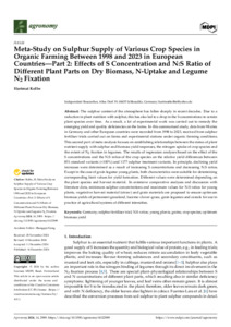 Kolbe, Hartmut (2024) Meta-Study on Sulphur Supply of Various Crop Species in Organic Farming Between 1998 and 2023 in European Countries – Part 2: Effects of S Concentration and N:S Ratio of Different Plant Parts on Dry Biomass, N-Uptake and Legume N2 Fixation. [Metastudie zur Schwefelversorgung verschiedener Kulturpflanzenarten im ökologischen Landbau zwischen 1998 und 2023 in europäischen Ländern – Teil 2: Auswirkungen der S-Konzentration und des N:S-Verhältnisses verschiedener Pflanzenteile auf Trockenbiomasse, N-Aufnahme und Stickstofffixierung von Leguminosen.] Agronomy, 14 (2989), pp. 1-27.