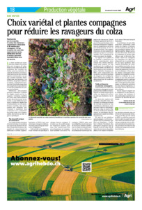 Wendling, Marina and Reichlin, Benjamin (2025) Choix variétal et plantes compagnes pour réduire les ravageurs du colza. Agri, 8 August 2025, p. 18.